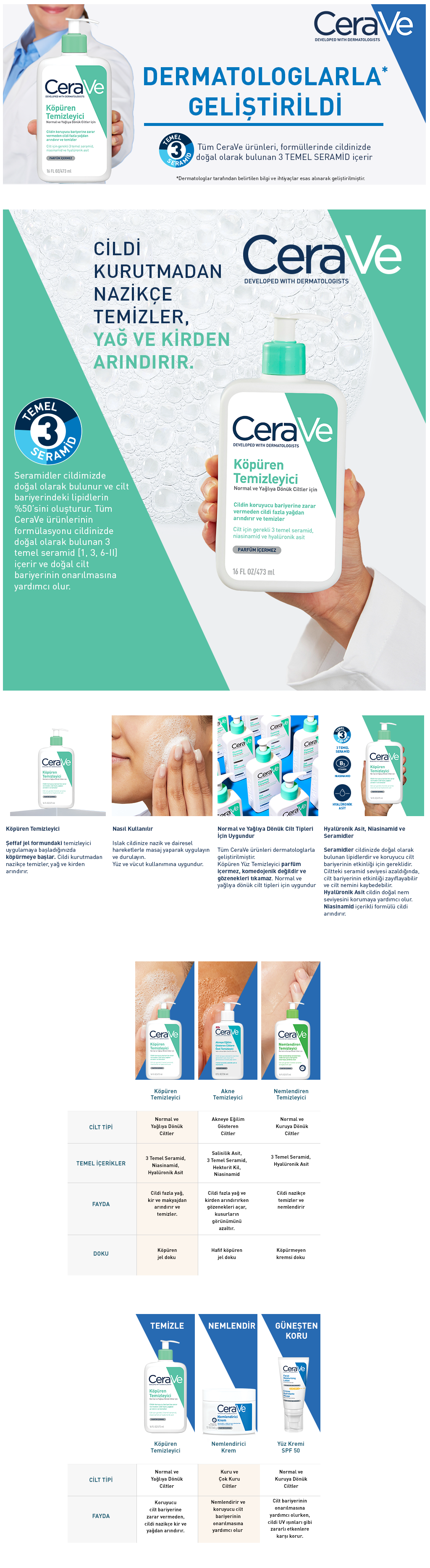 CeraVe Foaming Cleanser 473 ml | Normal ve Yağlı Ciltler İçin Köpüren Temizleyici